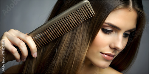 A woman combs her hair silk shiny macro, love photo, photorealism, AI generated