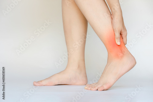 A woman grabs her ankle because she sprained her ankle from incorrect exercise.