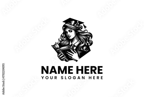 A Woman Graduate with Book Logo Design
