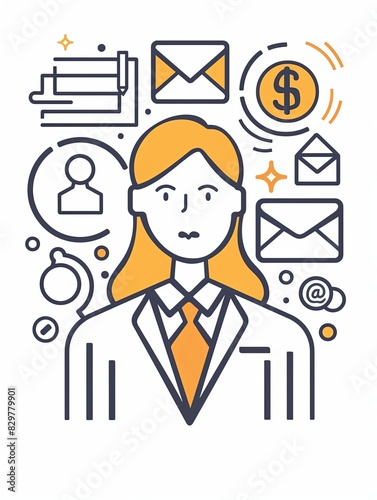 A woman in a white lab coat with a tie and a dollar sign on her head