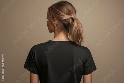 A woman wearing a black shirt facing away from the viewer