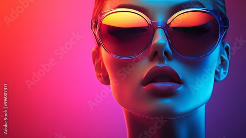A woman wearing sunglasses with a purple background