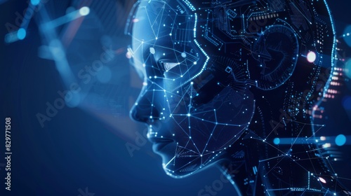 A woman's face is shown in a blue and white color scheme