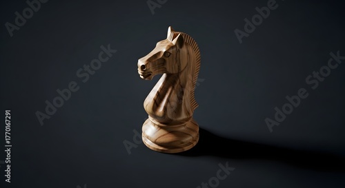 A Wooden Chess Knight Sculpture on a Dark Surface