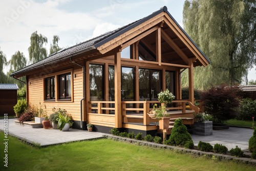 a wooden modern cozy house in the forest