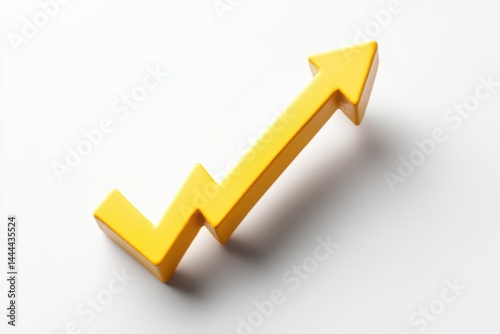 A yellow arrow pointing upwards with a zigzag pattern on a white background in a studio shot