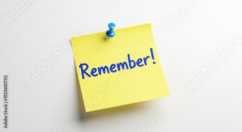 A yellow sticky note pinned to a white wall, reminding the viewer to "Remember!