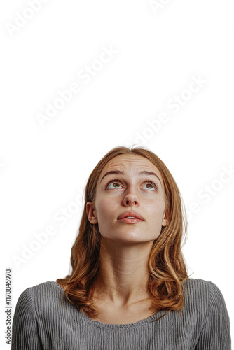 a young woman looking up with a thought bubble over her head PNG image, PNG file, Generative art.