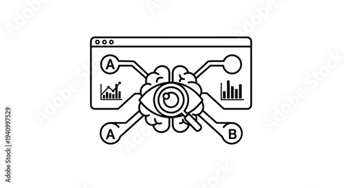 A/B Testing and Data Analysis Concept with Brain, Eye, and Charts