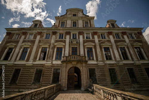 Abandoned Mansion Luxury Palace Castle Interior with Vintage Architecture and Decay