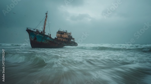 Abandoned shipwreck at sea