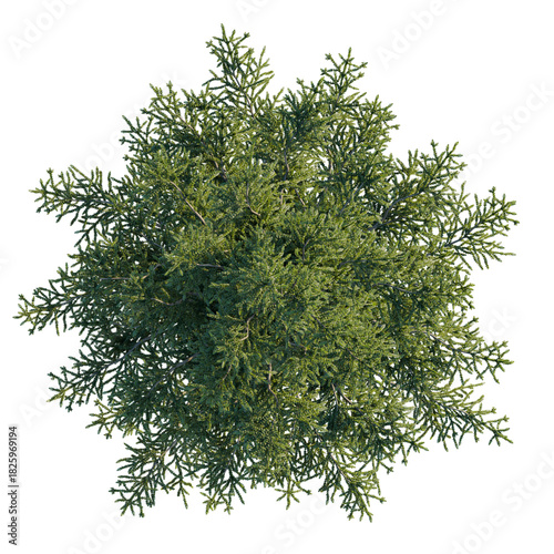 Abies alba tree plan, top view, cutout, transparent background, isolate, Aerial view of lush evergreen tree for landscaping or architectural render