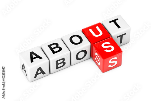 About Us Sign as Crossword Cube Blocks. 3d Rendering