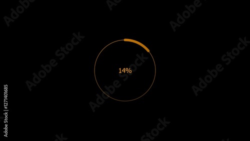Abstract 14% number percent circle loading pie chart circle modern design orange color 4k illustration.