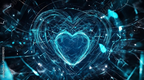 Abstract 3D Blue Heart Pulse Cardiography Trace in a Medical Context, Representing Health Monitoring, Emergency Care, and Vital Signs in a Hospital Setting.