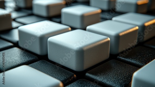 Abstract 3D Render: Gray and Black Cubes Pattern