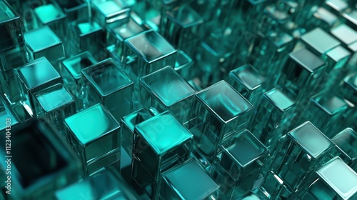 Abstract 3D Rendered Cubes with Teal and Aqua Color