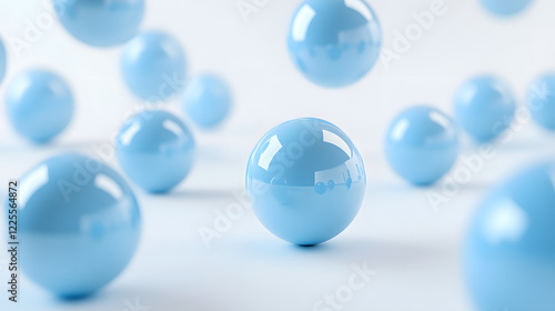 Abstract 3D Rendering background with blue bouncing balls.