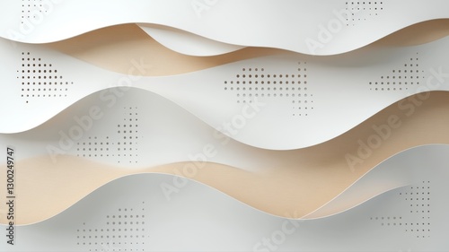 Abstract 3D wall panels with wavy patterns create a modern aesthetic in soft beige and white tones.