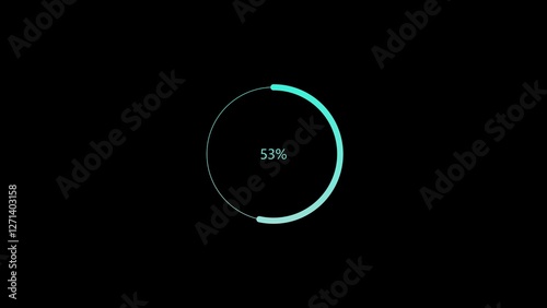 Abstract 53% number percent circle loading pie chart circle modern design white color 4k illustration black background.