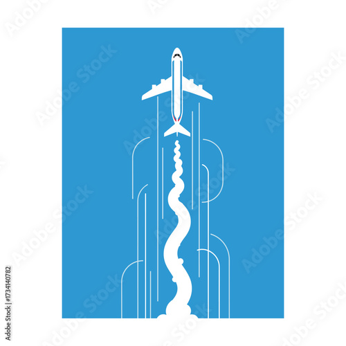 Abstract Airplane Takeoff: Minimalist Vector Illustration, Blue Background, Upward Movement