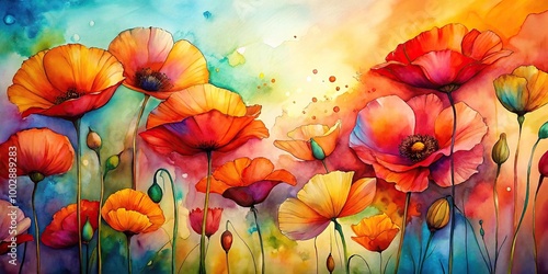 abstract alcohol ink painting of poppy flowers on a background Close-Up