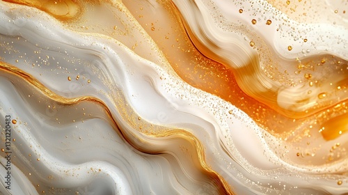 Abstract Amber and Off-White Resin with Gold Flecks