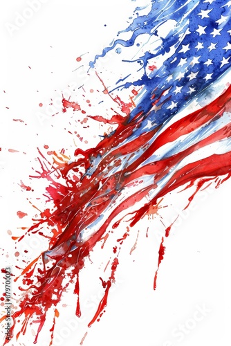 Abstract American flag with paint splashes and drips
