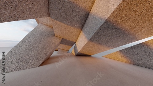 Abstract architecture background geometric concrete wall design 3d render