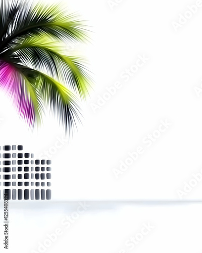 Abstract art palm frond in a clean modern interior. Ideal for background, design element, backdrop, and digital presentations