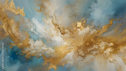 Abstract art piece with whimsical, amorphous clouds that blend warm