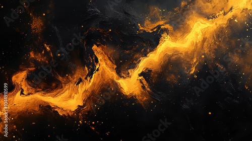 Abstract artwork featuring striking patterns of orange and black colors, creating a dynamic and vivid visual experience.