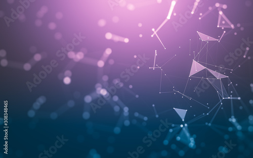 Abstract background. Molecules technology with polygonal shapes, connecting dots and lines. Connection structure. Big data visualization.