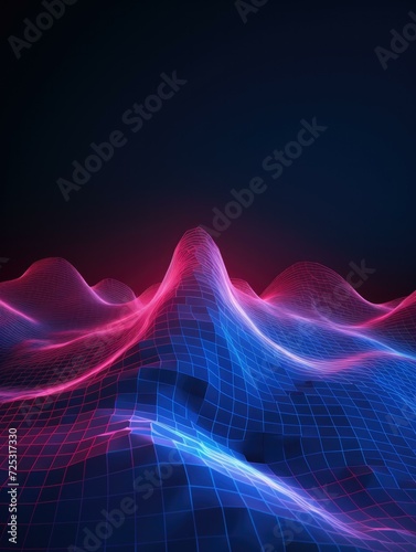 Abstract background of 3d digital wave with blue and red colors. Generative AI.