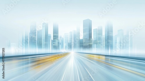 Abstract background of a modern city with blurred light lines and a speed effect on a white