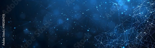 Abstract background vector illustration with connected dots and lines in blue color, technology network concept for banner design.