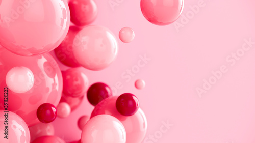 Abstract background with 3d spheres. Pastel pink bubbles. 3D illustration of balls. Colorful design concept. Banner or flyer background. Decoration elements for design