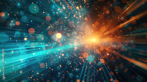 Abstract background with blue and orange blurred bokeh lights, speed effect