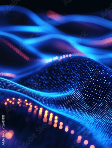 abstract background with blue glowing neon lines and bokeh lights. Data transfer concept. Digital wallpaper, AI Generative