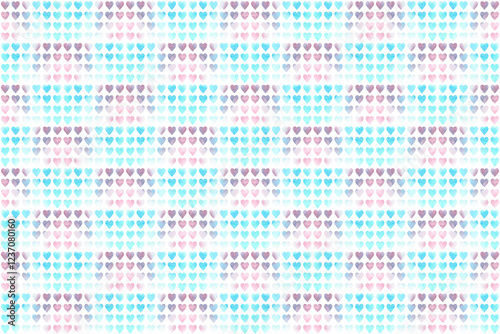 Abstract background with blue, pink and purple watercolor hearts. Seamless watercolor pattern.