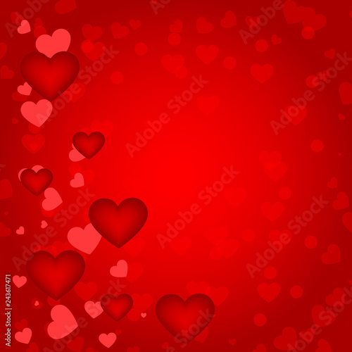 Abstract background with hearts, bokeh. Red festive vector illustration.