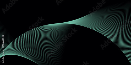 Abstract background with waves for banner. Medium banner size. Vector background with lines. Element for design isolated on black. Black, green and blue. Ocean, night, card