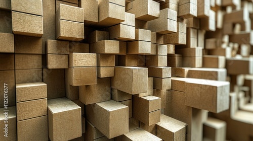 Abstract Beige Cubical Structure: A 3D Render of Interlocking Cubes