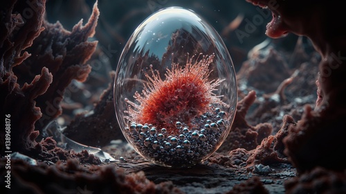 Abstract Biomechanical Orb with Intricate Organic and Metallic Elements