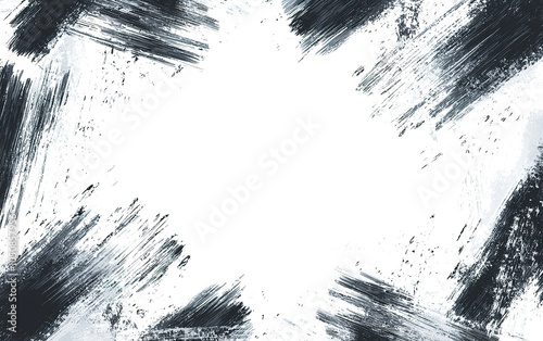 Abstract black and white brush strokes create a striking contrast on a blank canvas background, showcasing artistic expression and movement