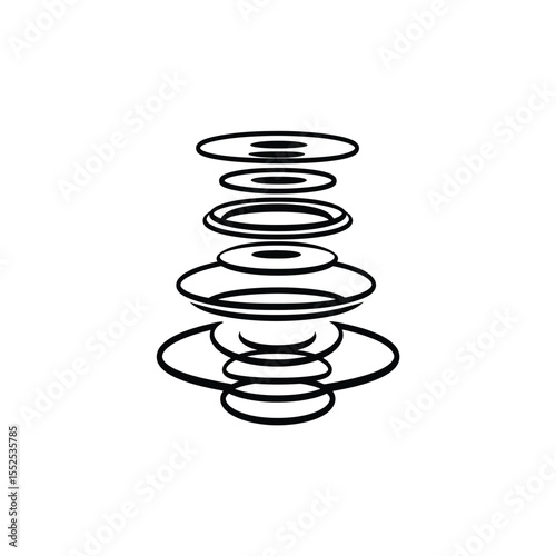 Abstract Black and White Stacked Circles Illustration on a Plain White Background