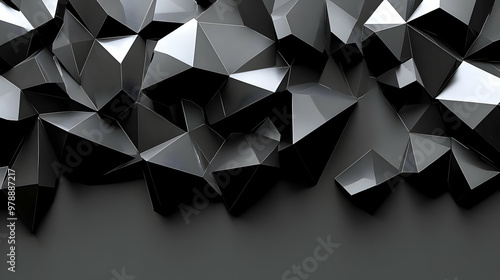 Abstract Black Geometric 3D Shapes, a Shiny Background with a Textured Design for Minimalist Concepts