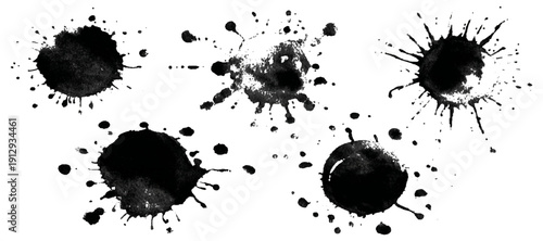 Abstract black grunge brush stroke set with ink paint splatter texture. vintage rough dirty old artistic background design.