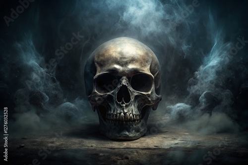 Abstract Black Horror Background: Ghost Skull, Left-Positioned with Copy Space