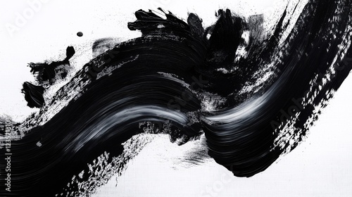Abstract Black Ink Splash in Japanese Brushstroke Style.